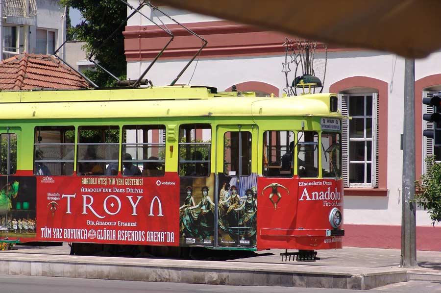Eine besondere, historische Attraktion in Antalya Kaleici, die man zunächst nicht erwartet: drei Züge der ehemaligen Nürnberger Straßenbahn erfüllen ihren Dienst seit Jahren.