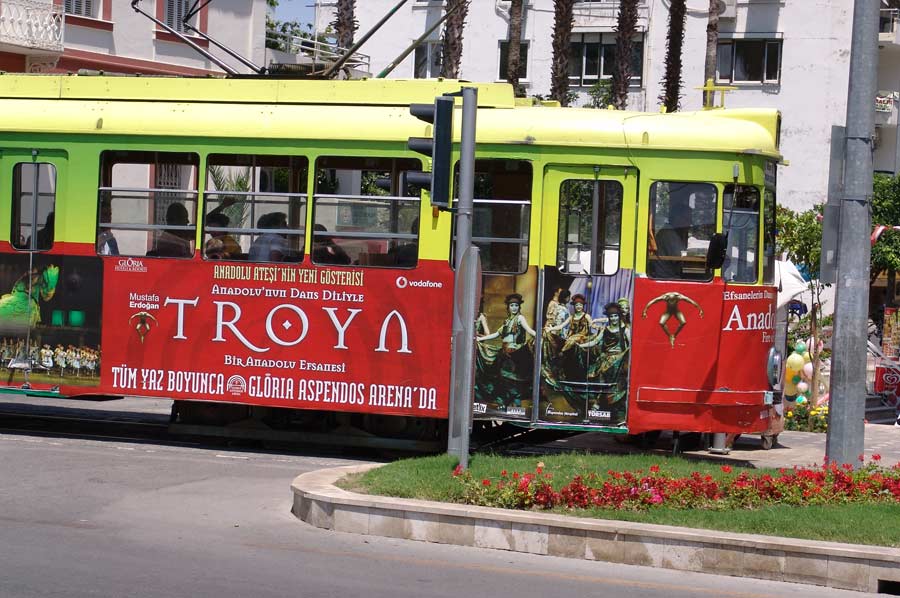 Mittlerweile ist auch eine neue Straßenbahn in Betrieb, die helfen wird, dem ständig wachsenden Straßenverkehr in Antalya besser zu koordinieren. Diese Straßenbahnlinie ist jetzt insgesamt 11 km lang und hat 16 Stationen. Sie verbindet die nordwestlichen Teile der Stadt mit dem Zentrum. Das ist das erste Teilstück einer Gesamtstrecke von geplanten ca. 43 km Bahnlinie für Antalya, wie im Verkehrsentwicklungsplan der Großstadt Antalya für die kommenden Jahre an neuen Transportwegen für den Personentransport vorgesehen ist.