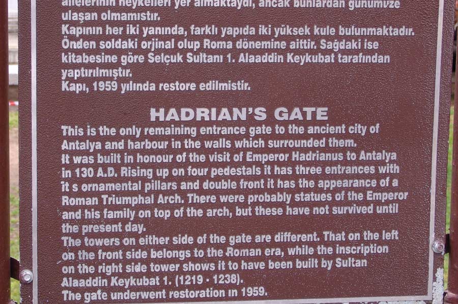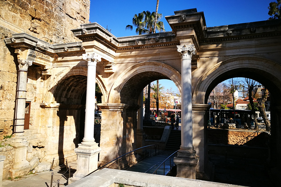 Das Hadrianstor (türkisch: Üçkapılar = „die drei Tore“) - ist ein bedeutsames Wahrzeichen von Antalya, dem antiken Attaleia, ebenso wie der berühmte Hafen im Altstadtkern von Kaleici.