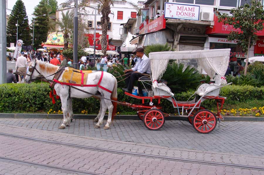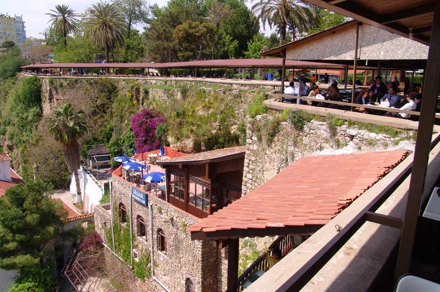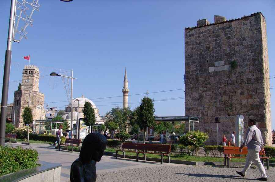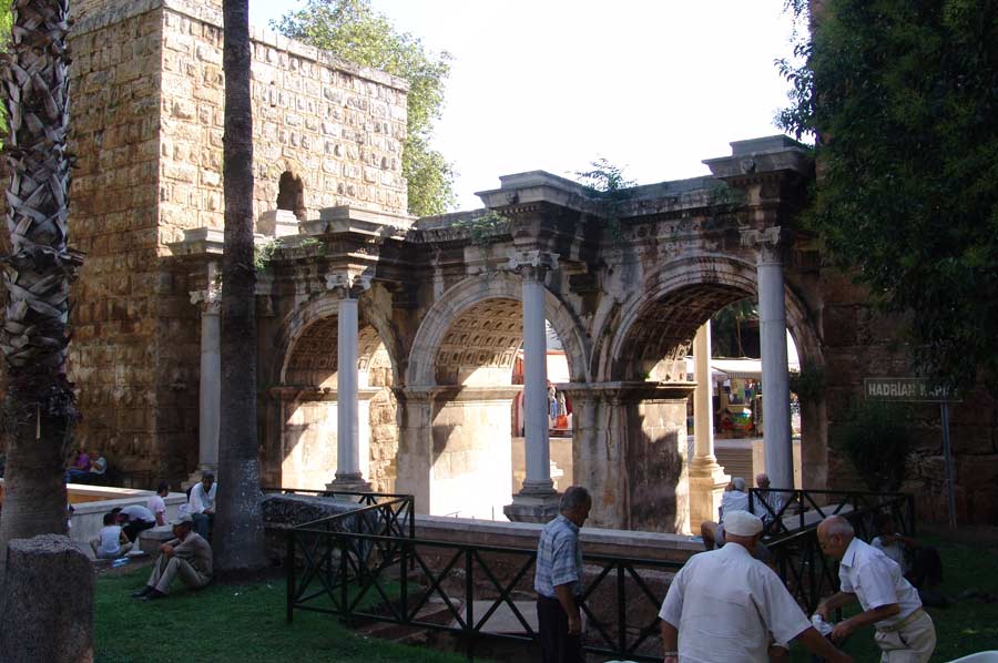 Die gemütlichen Restaurants laden zu leckeren Fischspezialitäten an frischer Luft ein. Weitere Sehenswürdigkeiten in der von schmalen Basarstraßen durchzogenen Altstadt sind das Hadrians Tor, das Festungstor mit Uhrturm am verkehrsreichen Hauptplatz, die nahe Tekeli-Mehmet-Pasa- Moschee sowie weiter südlich das Kesik Minare (= abgestumpftes oder abgebrochenes Minarett) bei den Ruinen der nicht genutzten Moscheeruine, die ursprünglich eine byzantinische Kirche war. Von der die Altstadt im Osten abschließenden hellenistisch-römischen Stadtmauer sind noch beträchtliche Teile (z.T. verbaut) erhalten. Der bedeutendste Teil ist das gut erhaltene Hadrianstor, das im Jahre 130 n.Chr. bei einem Besuch des römischen Kaisers Hadrian zu seinen Ehren errichtet wurde. Das von zwei sehr mächtigen Türmen flankierte marmorne Tor mit drei Bogenöffnungen trägt reichen, ornamentalen Schmuck.