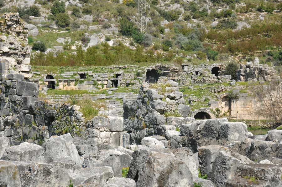 Nur etwa fünf Kilometer nach dem Ortsausgang von Finike folgt man dann den Hinweisschildern in östlicher Richtung zur antiken Stadt Limyra. Nach weiteren 4 Kilometern erreicht man das antike Theater, die Akropolis und einige der Nekropolen, die nördlich der Strasse gelegen sind.