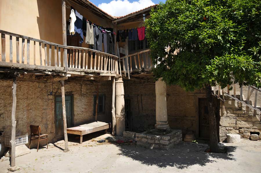 Eines der Häuser zeigt noch eine wunderbare Unterdecken Stoffbespannung, die in langen Bahnen angebracht worden war, ähnlich der heutigen Tapeten. Bei mir wächst der Gedanke, die Schmuckstücke vor dem Kaymakam zur Sprache zu bringen. Ob die Bewohner hier wissen, über welche Schätze sie verfügen?