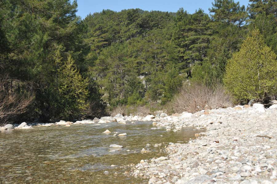 Trotz seiner langjährigen Erfahrungen, die er während der unterschiedlichsten Routenführungen durch den Taurus zwischen Manavgat und Akseki gewonnen hatte, war das geplante Teilstück auch für ihn eine Erstbegehung. So hatten wir uns für den Vormittag verabredet, um zunächst mit dem Auto bis Sinanhoca auf die Alm oberhalb des Oymapinar Stausees zu fahren. Von hier aus sollte es durch einen ausgewaschenen Canyon, der ansonsten nur von den Wanderhirten zum Erreichen der Hochalmen genutzt wurde, in Richtung der Ortschaft Melas Vadisi gehen.