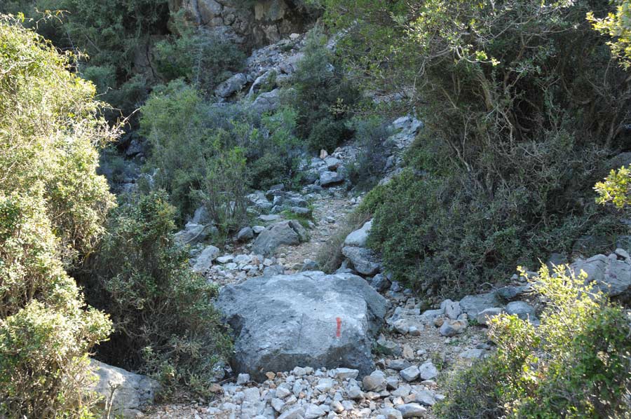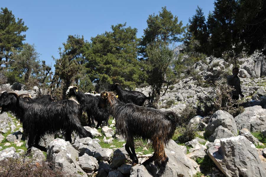 Loses Steinmaterial auf dem Ziegenpfad sorgt für wirklich körperlich anstrengendes Wandern, was verständlicherweise viel Zeit in Anspruch nimmt, da Pausen absolut notwendig werden. Bis zum Zielort sollen es etwa 16 Kilometer sein.
