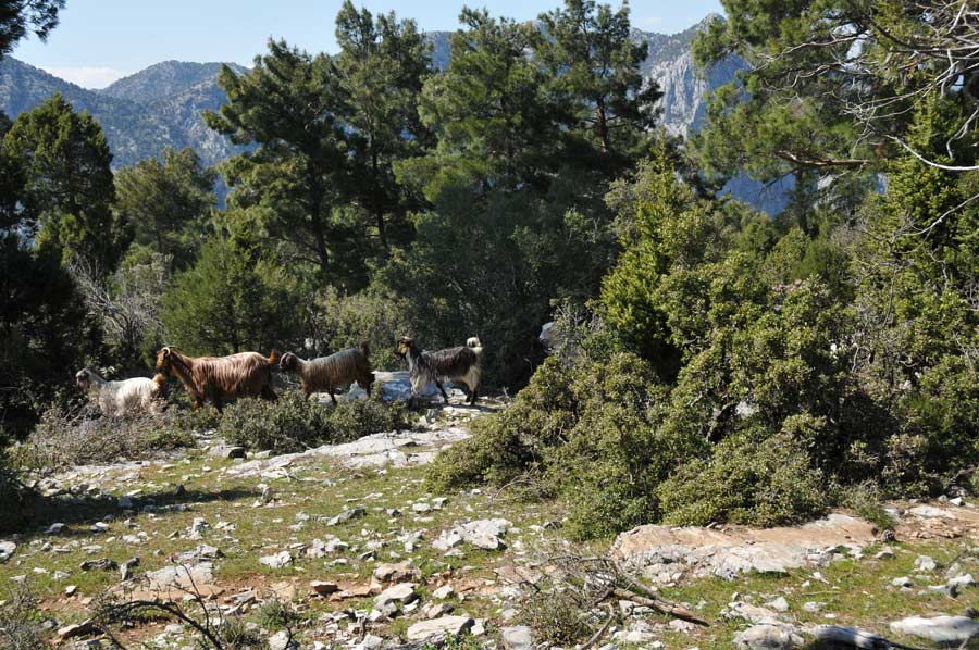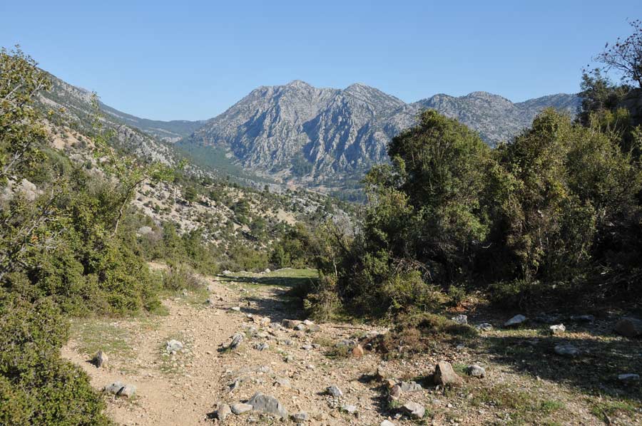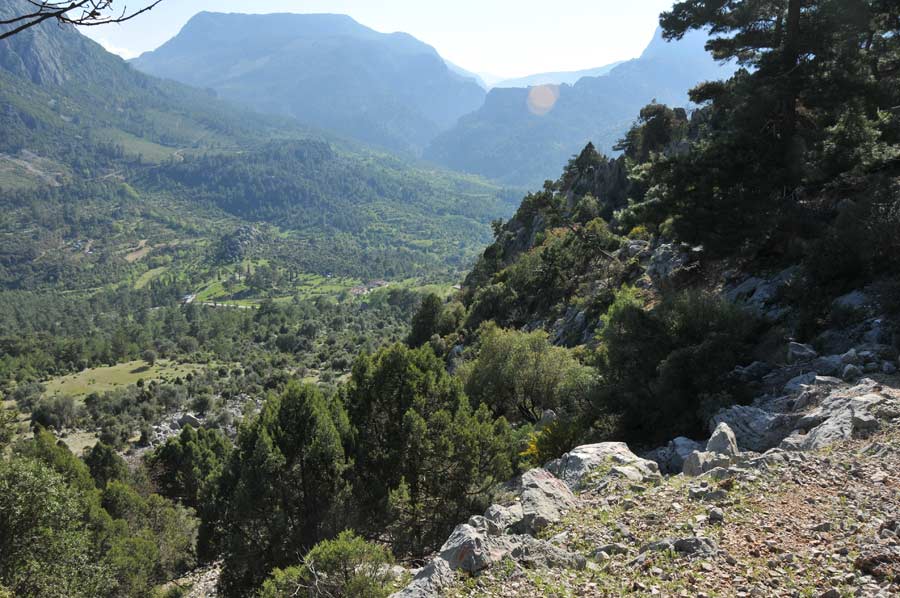 Natürlich sind auch immer wieder Pausen zum Betrachten der wirklich einmaligen Landschaft und natürlich auch zum Fotografieren des Panoramas notwendig. Wir bemerken nach etwa 800 Metern erstiegener Höhe und etwa der Hälfte des Wegs über waldige Passagen und fast gartenartigen Plateaus, das die Zeit doch sehr weit vorangeschritten ist und beschließen nach einiger Diskussion die Rückkehr zum Ausgangspunkt, da uns der verbleibende Restweg bis wieder hinab nach Melas Vadisi noch unbekannt ist, wir aber auch keine Ausrüstung für eine Nachtwanderung dabei haben und wir auch noch bis zum Standort des Fahrzeugs nach Sinanhoca zurück kehren müssen.