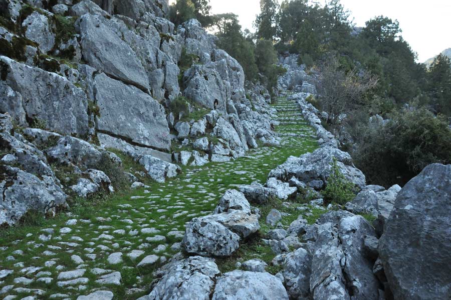 Wir hatten über einige Teilstücke dieser Karawanenwege bereits berichtet, die als gepflasterte Routen noch heute existieren und relativ einfach zu erwandern sind. Schwer beladene Kamelkarawanen benötigten etwa 2 Meter breite, nicht zu steile Wege, die auch nicht zu enge Kurven enthalten sollten. Die seldschukischen Sultane sorgten dafür, das diese Karawanenrouten immer instand waren, das notwendige Befestigungen und Brücken angelegt waren, so das der Handel florieren konnte.