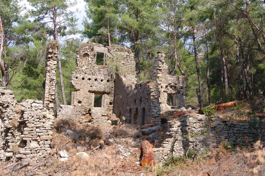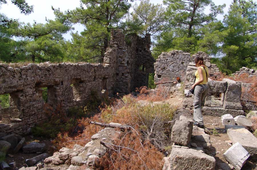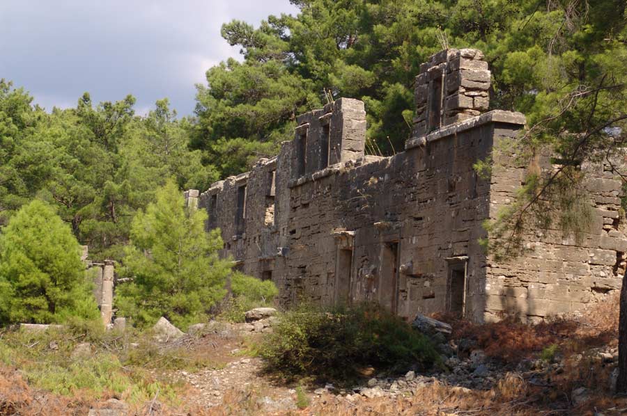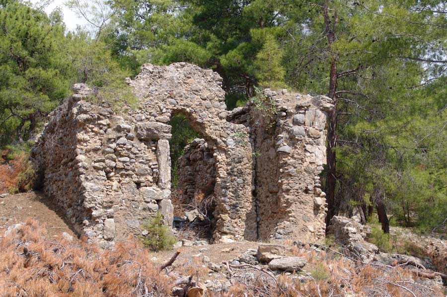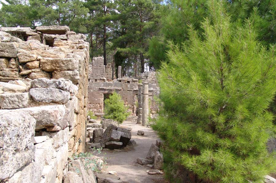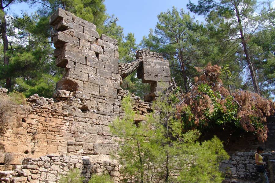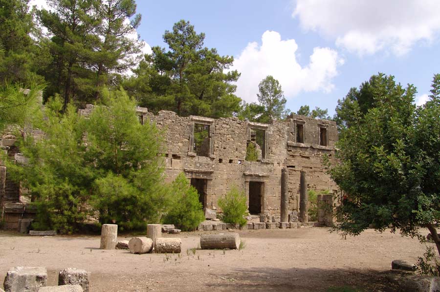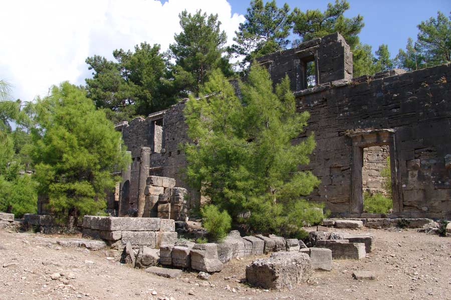 Es gab auch einen Apollon Tempel im nördlichen Teil der Agora, der auf einer Plattform aus Marmor errichtet war. An der westlichen Seite der Ruinenfelder wurde auch eine Höhle gefunden, die als religiöser Treffpunkt für Gottesdienste genutzt wurde. Weiter westlich der Höhle gab es ein mit wunderschönem Mosaik gekacheltes Hamam aufgeteilt in drei Sektionen und vielen Nebenräumen. Der wahrscheinlich schönste Ausblick auf die Siedlung, den umgebenden Wald, das Meer und die umgebenden Canyons als Gesamtpanorama erhält man südwestlich des Hamams.