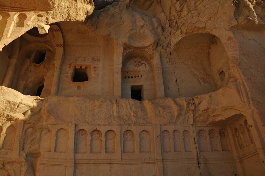 Nachdem ab 642 verstärkt Araber in die Region eindrangen, gewannen diese Aspekte mehr und mehr an Bedeutung, so dass drei Jahrhunderte lang christliche Gemeinden hier vor allem versteckt und gegen Angreifer abgesichert lebten. Unter der darauf folgenden Periode byzantinischer Herrschaft erlebte das Christentum und damit die christliche Architektur in Kappadokien ihre Blütezeit. Bis zum elften Jahrhundert wurden etwa 3000 Kirchen aus dem Tuffgestein ausgeformt.