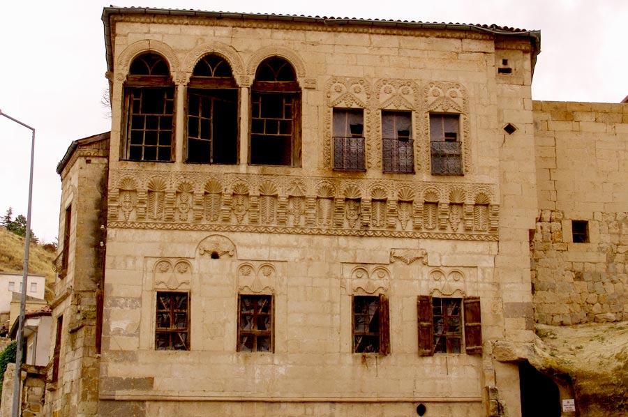 Heute leben in der Kleinstadt größtenteils Türken, die im Zuge des Bevölkerungsaustausches aus Saloniki kamen. Im letzten Jahrhundert war es das Zentrum Kappadokiens und reiche Geschäftsleute aus Istanbul bauten hier ihre prachtvollen Landsitze. Der ganze, ehemalige Dorfkern besteht aus einer Vielzahl solcher Villen, die aus Quadern von Tuffstein fugenlos errichtet wurden. In vielen Häusern sieht man noch prachtvolle Wandmalereien und verspielte Reliefarbeiten.