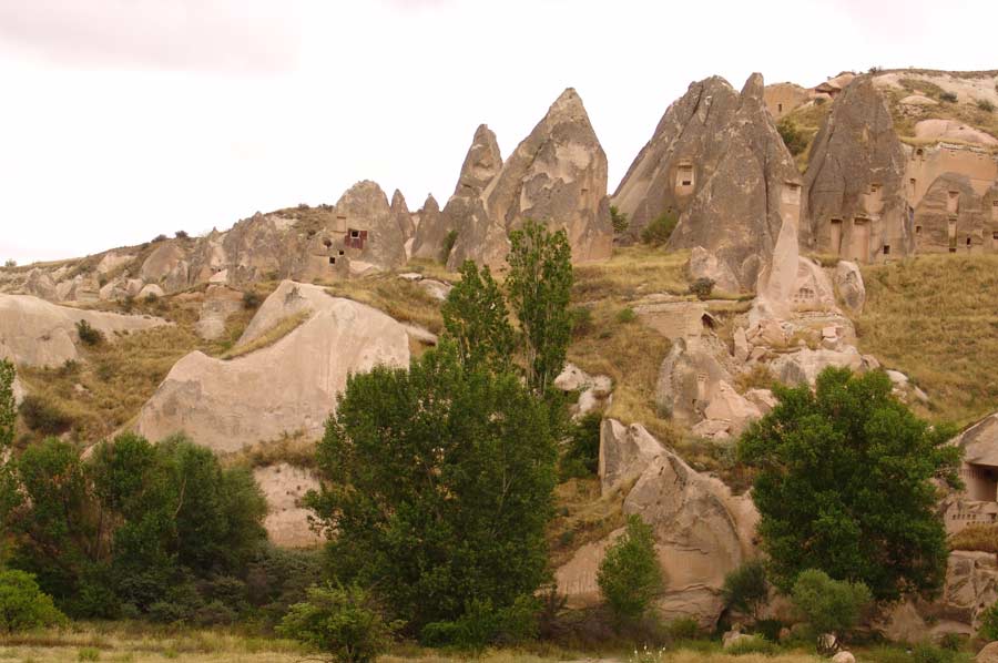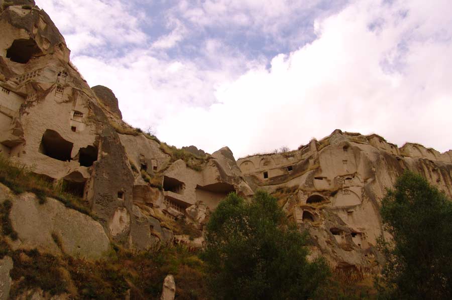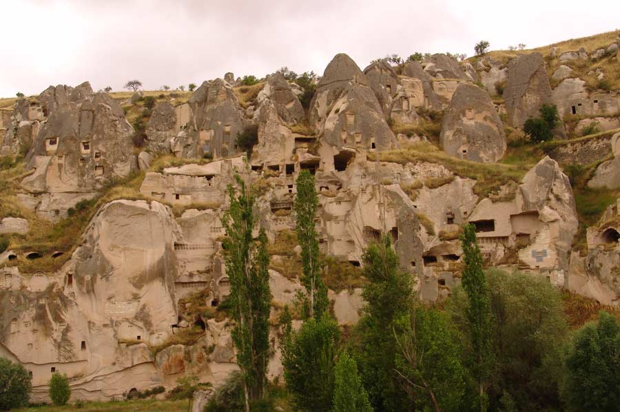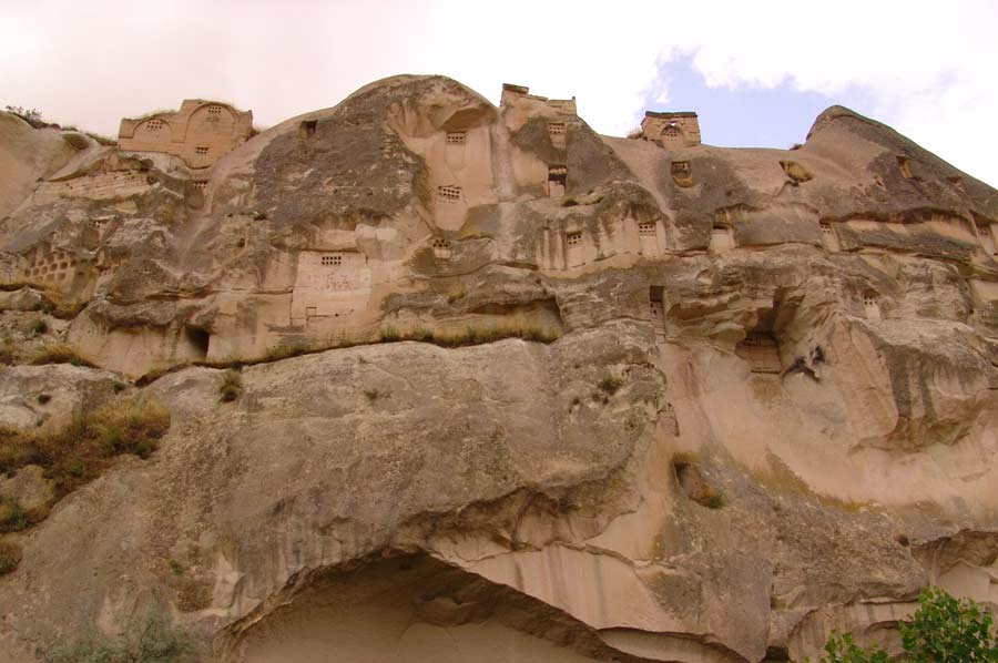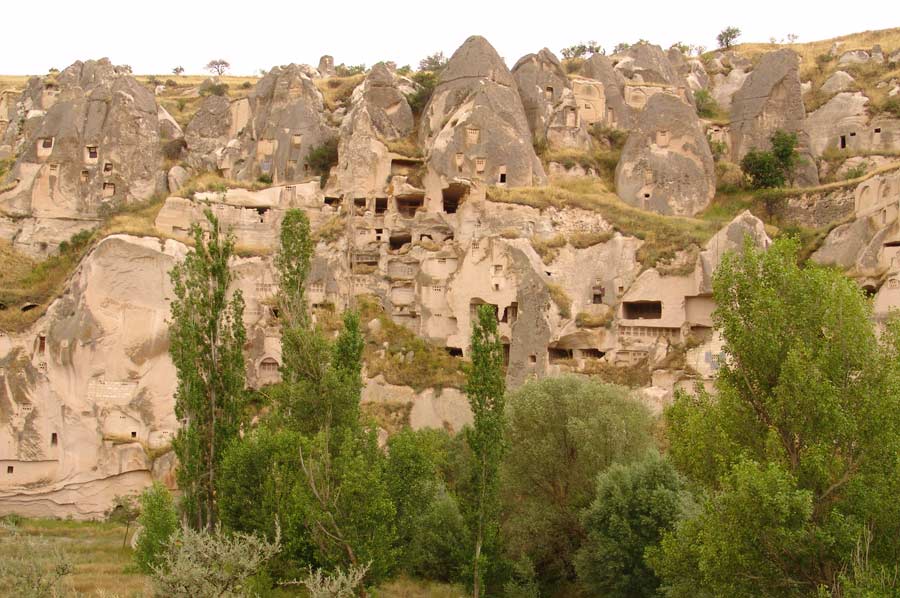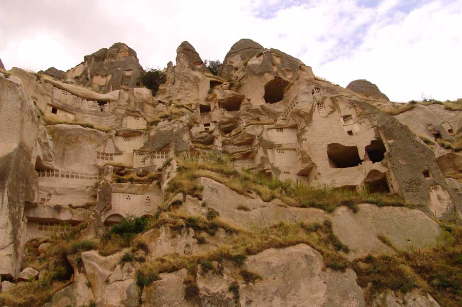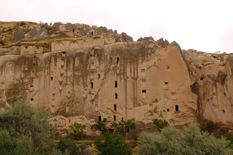 Während unserer Wanderung entlang des Bachlaufs waren wir zunächst von der Schönheit der Natur tief beeindruckt und dem herrlichen Vogelgezwitscher überrascht. Das Tal, das sich weiter in die inneren Bereiche Kappadokiens erstreckt, zeigt zahlreiche Spuren der vergangenen Zivilisationen, die Sie als Zeugen der Vergangenheit dort begrüßen. Im Üzengi Tal wurden zur Gewinnung von Taubenkot zur Düngung einst zehntausende von Tauben gehalten und es ist unmöglich die in die Felsen geschlagenen Taubennester zu übersehen. Die Weinfelder des Tales konnten lange Jahre durch den Taubendünger sehr gut gedüngt werden und somit reichhaltige Ernten erzielt werden. Die Öffnungen zu den Taubennester sind sehr klein und haben auch nur einen winzig kleinen Eingang, um die Tauben vor Raubtieren zu schützen.