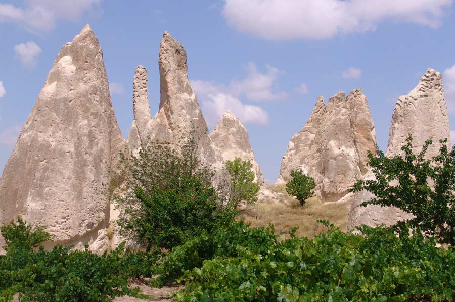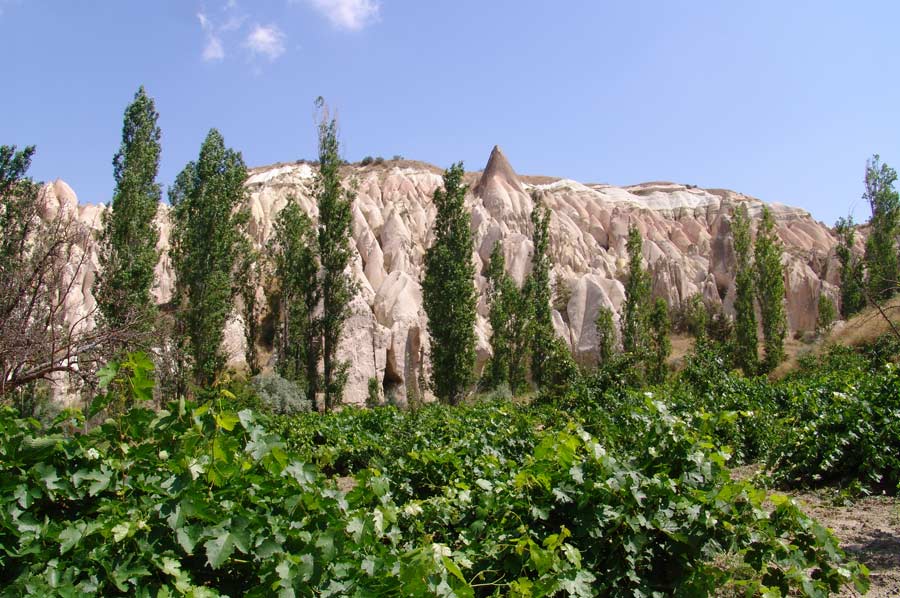 Nach einer kurzen Rast fuhren wir in den Ort Ürgüp zum Essen. Hier erwartete uns eine ganz besondere Spezialität, die uns bislang unbekannt war: In Tontöpfen wurden verschiedene Eintopfgerichte angeboten, die zum Zwecke des Garens mit Deckel und Brotteig als Vakuumverschluss geschlossen wurden und dann über offenen Feuer erhitzt wurden. Der Brotteig begann aufzugehen und zu garen und hat somit den Deckel mit dem Topf verklebt: der türkische Schnellkochtopf! Ohne Verlust an Nährstoffen waren die Gerichte schon wenig später gar. Sehr lecker und empfehlenswert, genau richtig für den kleinen Geldbeutel eines Wanderers.