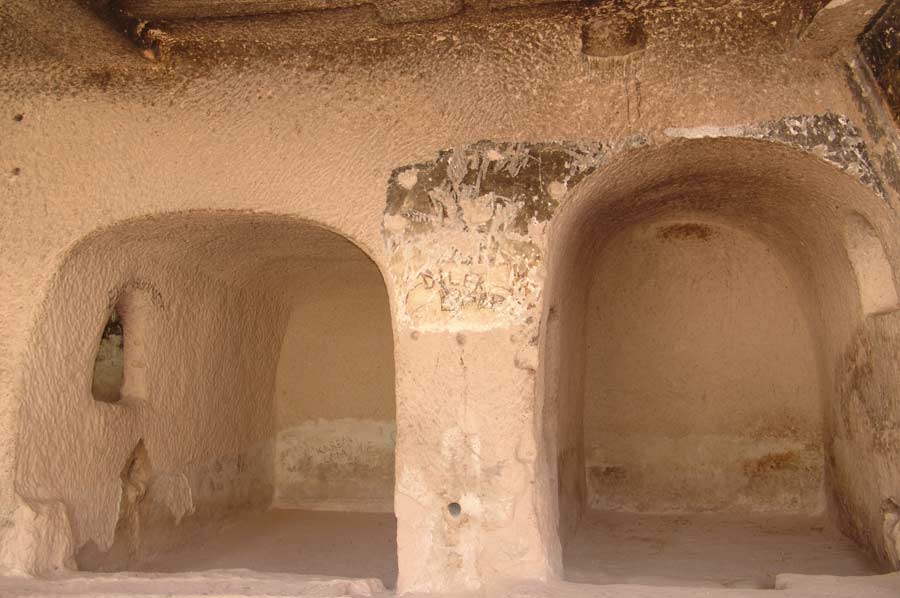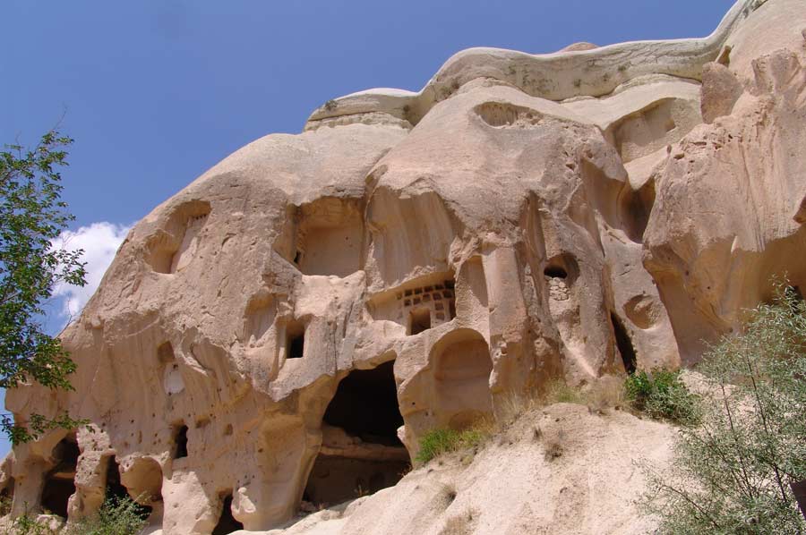 Wie vielerorts in der Türkei üblich, folgte nun die Einladung zum "Haus" der Familie Ahmet. Zusammen mit seiner Frau und den beiden Söhnen lebt Ahmet weit weg von der nächsten Siedlung in einer 1-Zimmer Wohnhöhle, die vor etwa 1800 Jahren von vermutlich vor den Römern fliehenden Christen in den weichen Fels geschlagen worden war. Kappadokien war ein wichtiger Rückzugsort für die Christen, die auch für die Wohnhöhlen, die so genannten unterirdischen Städte, tief unten im Fels verantwortlich sind.