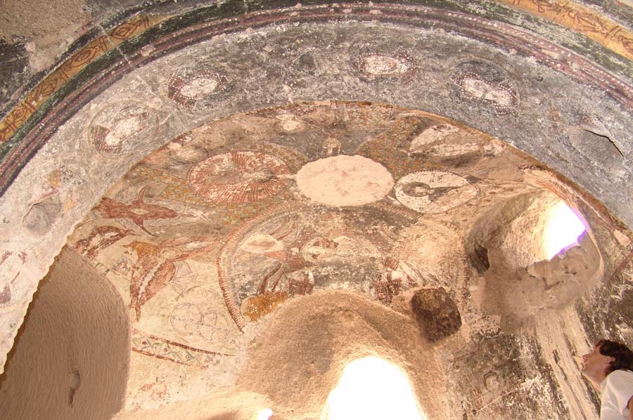 Direkt neben der Einzimmerwohnung wieder eine Einraumkirche mit herrlichen Deckenfresken. Wir wollten allerdings zurück zum Hotel um uns auch in Ürgüp noch etwas umzusehen.