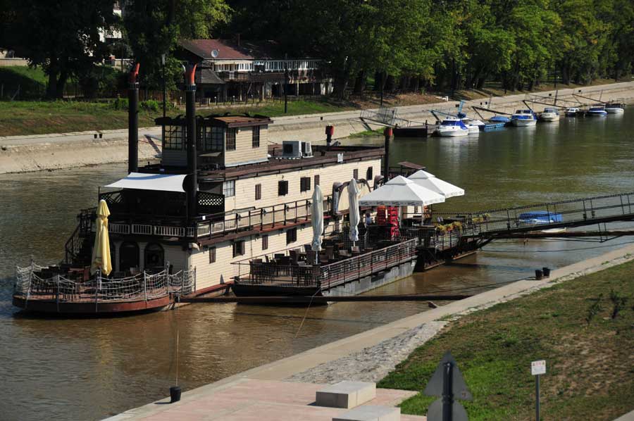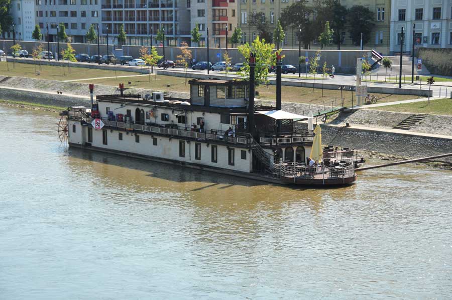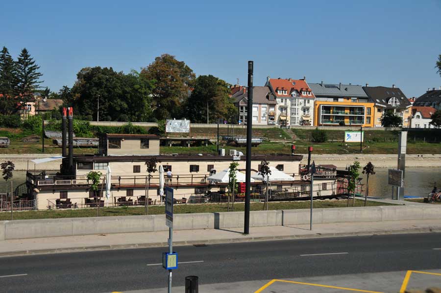 Ein alter Raddampfer, heute als ein Museum und Restaurant fungierend, bildete ein imposantes Fotopanorama, wozu auch ein riesiger Spiegel beitrug, in dem je nach Standpunkt große Teile der Stadt als Spiegelbild zu sehen waren. Schon toll, was hier an Einrichtungen und Optionen für die Bürger und Besucher der Stadt Györ getan wurde.