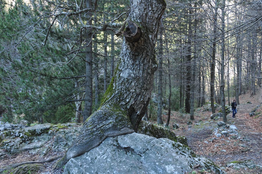 Wir wählen allerdings die so genannte Route E4, die im oberen Ortsteil von Litochoro beginnt und am ehemaligen Sägewerk bei Prionia am Restaurant enden soll, da die Berghütten und selbst auch das Restaurant von Prionia bereits geschlossen sind. Das sonnige Wetter lädt geradezu zu dieser herbstlichen Wanderung Anfang Dezember ein.