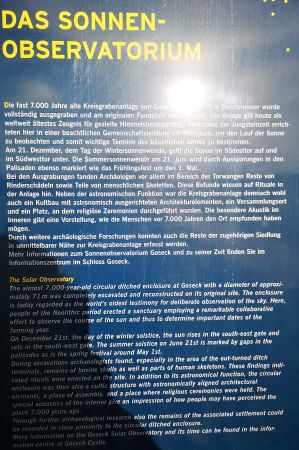 Etwa einen Kilometer von dieser Anlage entfernt ist eine weitere neolithische Siedlung entdeckt worden. Eine Erkundungsgruppe der Universität Halle ist in der Ortschaft Goseck beim Ausheben eines etwa 50 Meter langen und einen Meter tiefen Suchgrabens auf die Überreste eines 7000 Jahre alten Dorfes der Linearbandkeramik gestoßen.