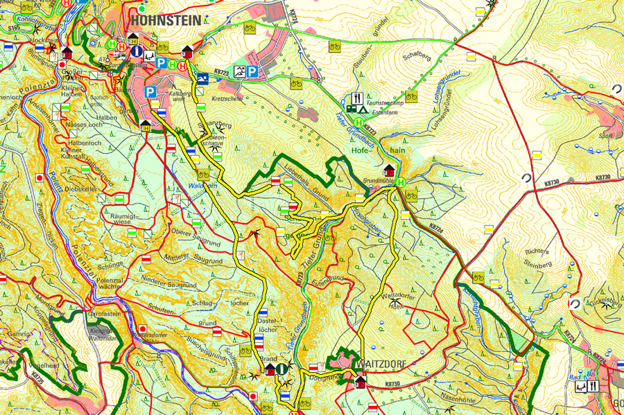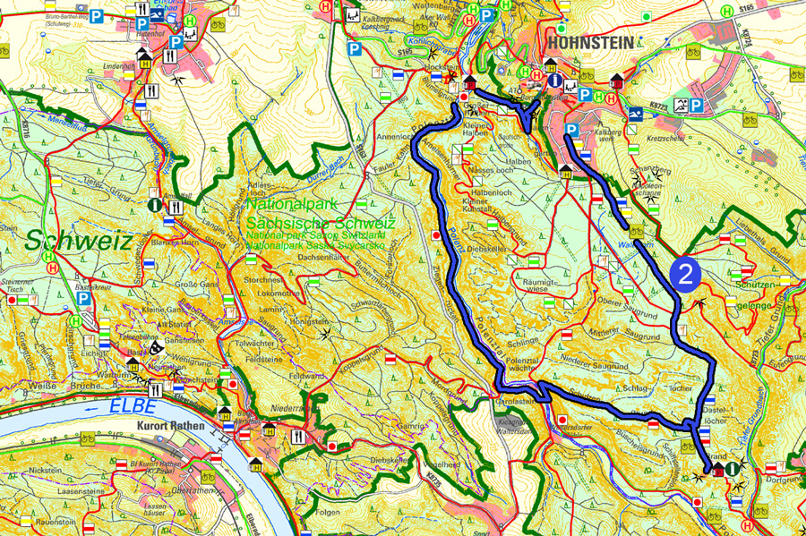 Im Hohnsteiner Tälerland treffen sich Gegensätze aus weiten Aussichten und tiefen Schluchten, steilen Aufstiegen und entspannten Waldwegen. Vom erholsamen Spaziergang bis zur anspruchsvollen Wanderung ist hier alles möglich. Angesprochen seien hier nur drei mögliche Routen: