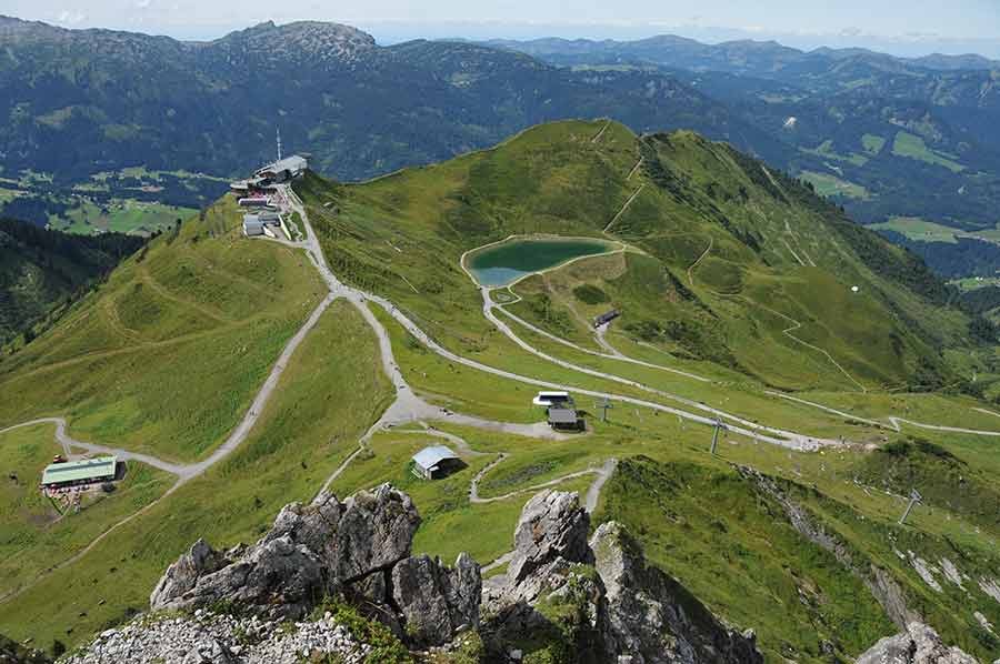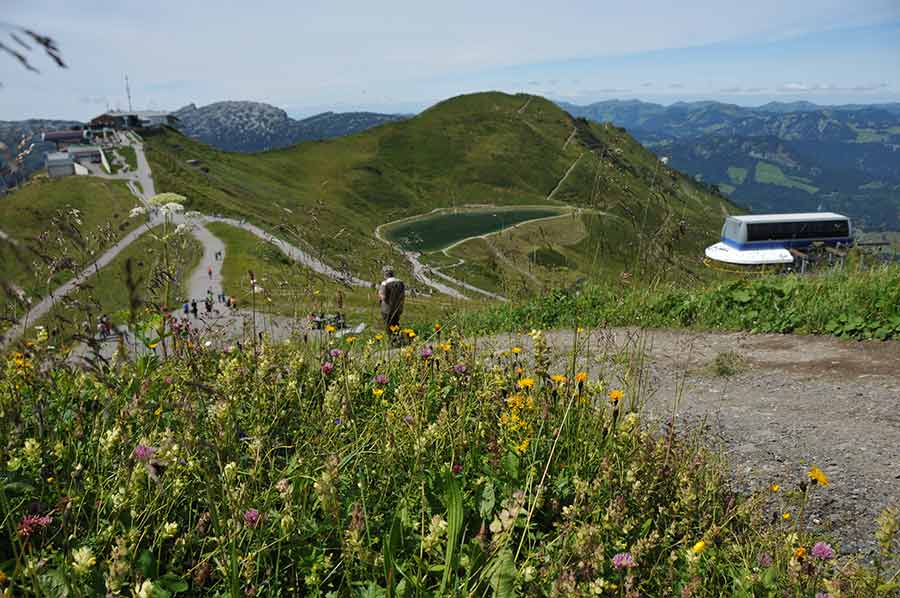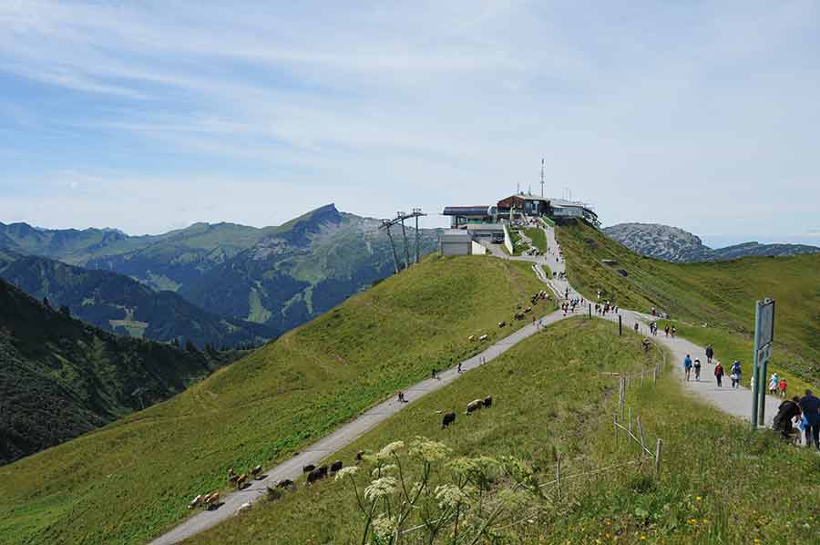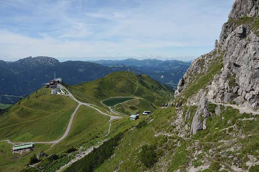 Heute haben sich Kanzelwand-, Fellhorn-, Walmendingerhorn- und Nebelhornbahn zu einem Verbund zusammengeschlossen, der unter dem Namen Das Höchste für die Region Oberstdorf und Kleinwalsertal wirbt. So ist es für den Touristen möglich mit seiner Walser-Card alle 4 Seilbahnen zu nutzen, was im Sommer das Erwandern der so verschiedenartigen Touren hinsichtlich des Schwierigkeitsgrades und der Tourlängen erleichtert. Aufgrund der vorgerückten Zeit beschränken wir uns heute, einmal an der Aussichtsplattform angekommen, allerdings auf den Anstieg zum Gipfelkreuz der Kanzelwand.