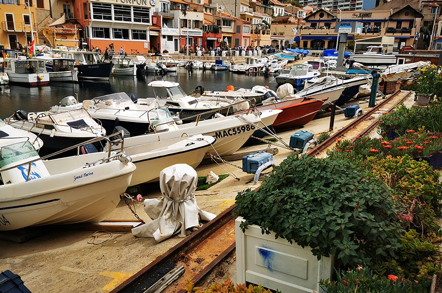 Eingezwängt zwischen zwei Klippen und dem Meer zugewandt, bietet das Vallon des Auffes das Bild eines idyllisch, malerischen Hafens, als wäre die Zeit des Marcel Pagnol stehengeblieben.