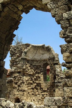 Den Rest der noch vorhandenen Kreuzfahrerbauten sehen wir uns auf einem Rundgang entlang der Stadtmauer an. 365 Kirchen soll es hier einmal gegeben haben, Zeugnisse dankbarer und erfolgreicher Händler. Von der Johanniterkirche ist kaum noch Beachtenswertes zu sehen. Diese Stätten sind unbeabsichtigt Müllsammelstätten geworden, für die der Wind stets Treibgut als Nachschub liefert. Die Sinan-Pascha-Moschee ist ebenfalls verkommen. Ein Teil des Gebäudes scheint noch genutzt zu werden.