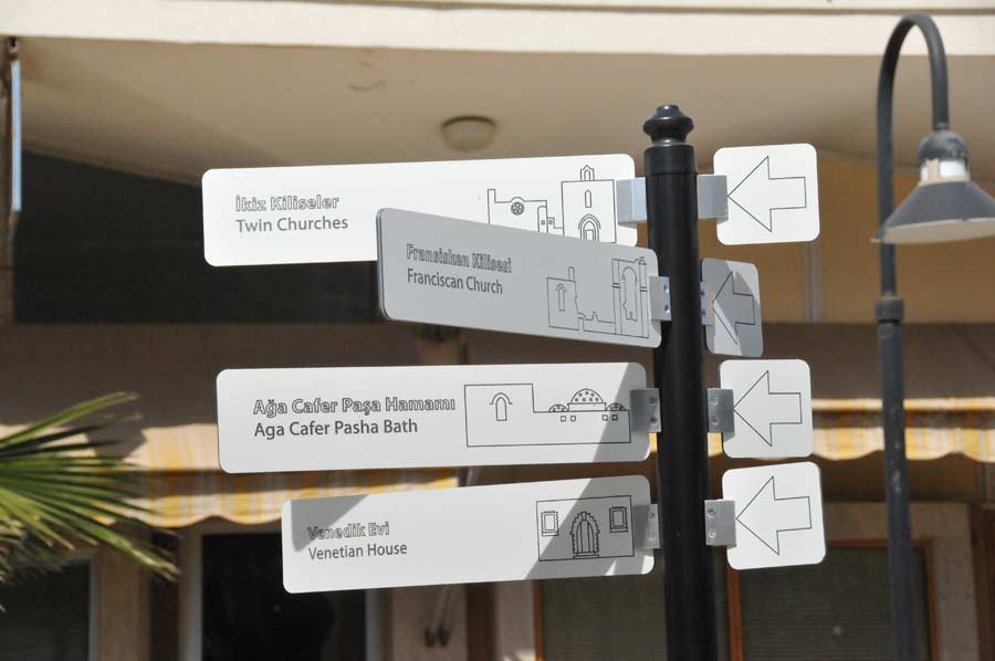 Die ehemalige St.-Nikolaos-Kathedrale war die Krönungskirche der Herrscherfamilie der Lusignans, die hier im 14. Jahrhundert zu Königen des damals längst untergegangenen Königreiches Jerusalem und von Zypern gekrönt wurden. Die Kirche wurde 1571 in die Lala-Mustafa-Paşa-Moschee umgewandelt und ist ein bedeutendes Beispiel der französischen Gotik. Gegenüber der Moschee befinden sich die Reste des venezianischen Gouverneurspalastes.