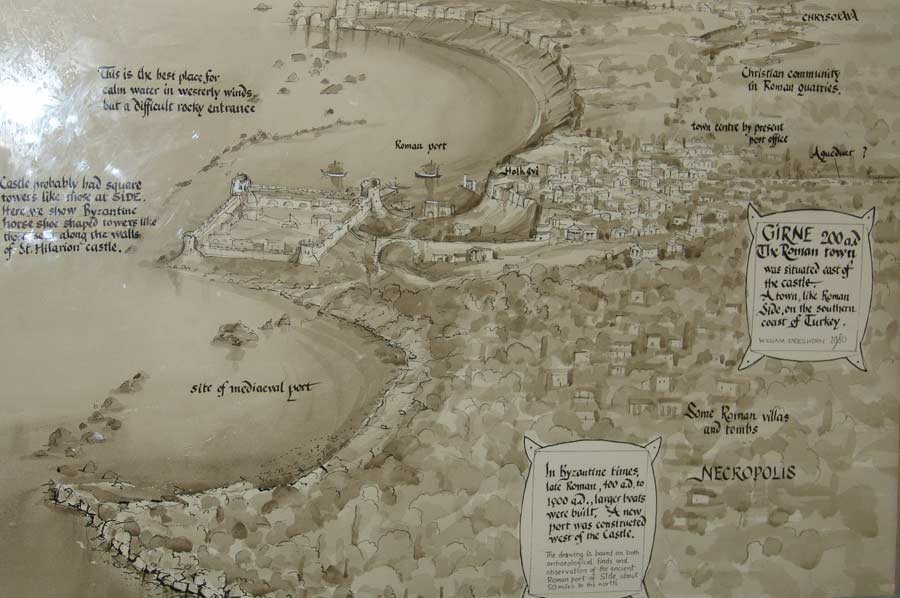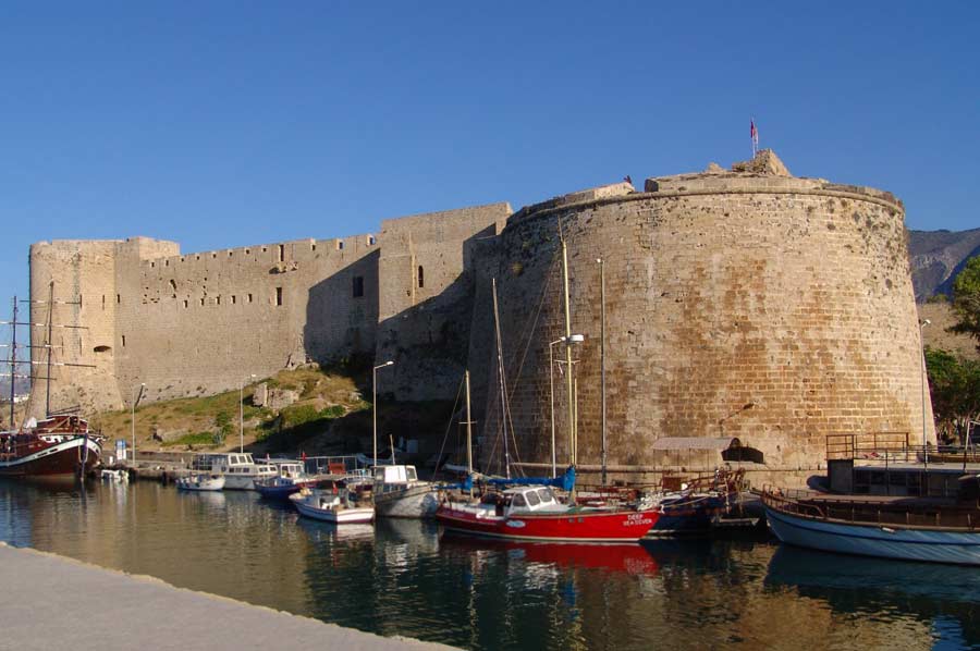 Mit dem Standort direkt an der Hafeneinfahrt von Girne / Kyrenia vermittelt die in ihrer jetzigen Form aus dem 15ten Jahrhundert stammende Festung den Eindruck einer bedeutenden und uneinnehmbaren Festung, die ihre Bürger zu schützen weiß.