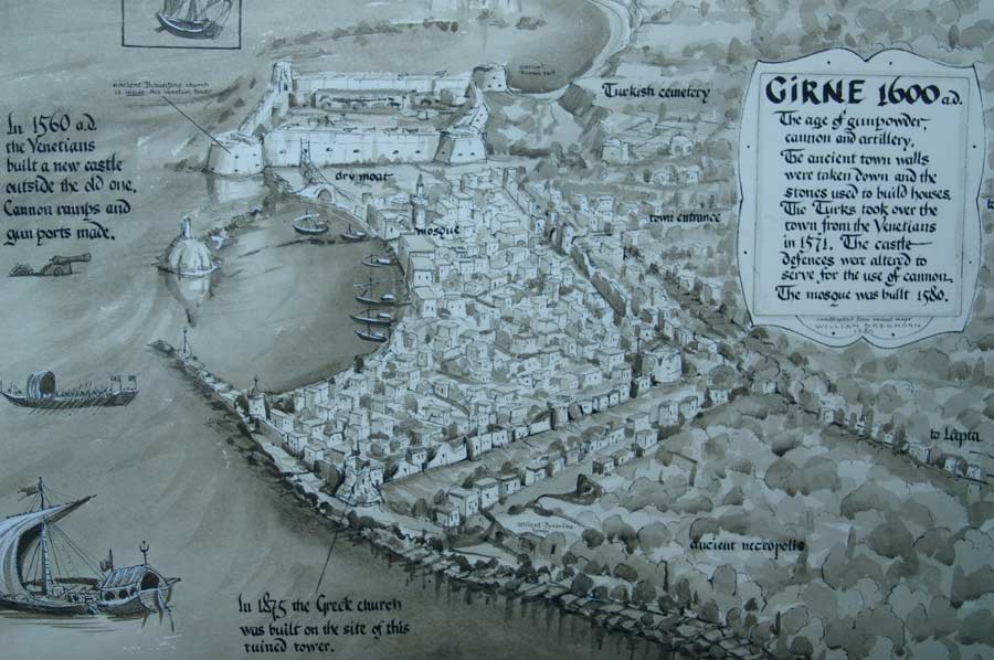 Die Venezianer bauten die Befestigungsanlagen der Stadt um 1540 massiv aus, um die Insel gegen die Osmanen verteidigen zu können. Diese eroberten die Insel dennoch 1570 bis 1571. Kyrenia ergab sich, nachdem Efgenios (Zeno der jüngere) Synglitico, Graf von Rocca, der Anführer der venezianischen Truppen, mit seinem Bruder Tommaso, dem Vizegrafen von Nikosia, getötet worden war.