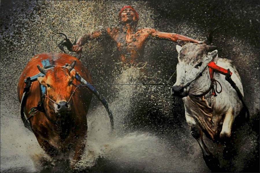 This snapshot, which was taken by Malaysian freelance photographer Dr. Wel Seng Chen in Indonesia’s city of West Sumatra, reveals a tradition of 400 years. The bull race, which is called Pacu Jawi, is organized in cleaned fields after the rice harvest. The bare footed competitors tie themselves to two bulls by using a wood harness and they herd the bulls by gripping their tails. The winner of the competition is determined according to the talent of gripping the animal on the straight line and the collaboration between the two bulls.