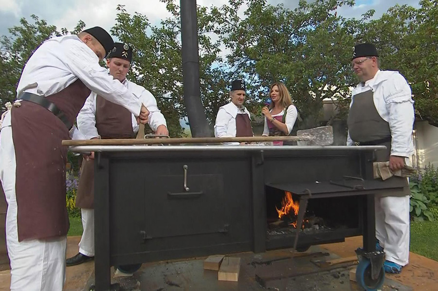 Court scenes, compiled from the city archives, showed medieval jurisprudence. Salt boiling and salt sales were demonstrated. The rescuing of the miller family from the burning mill in 1316 was re-enacted. According to legend, the settlers are said to have taken over this. The cake is said to have been donated by the miller as a thank you.