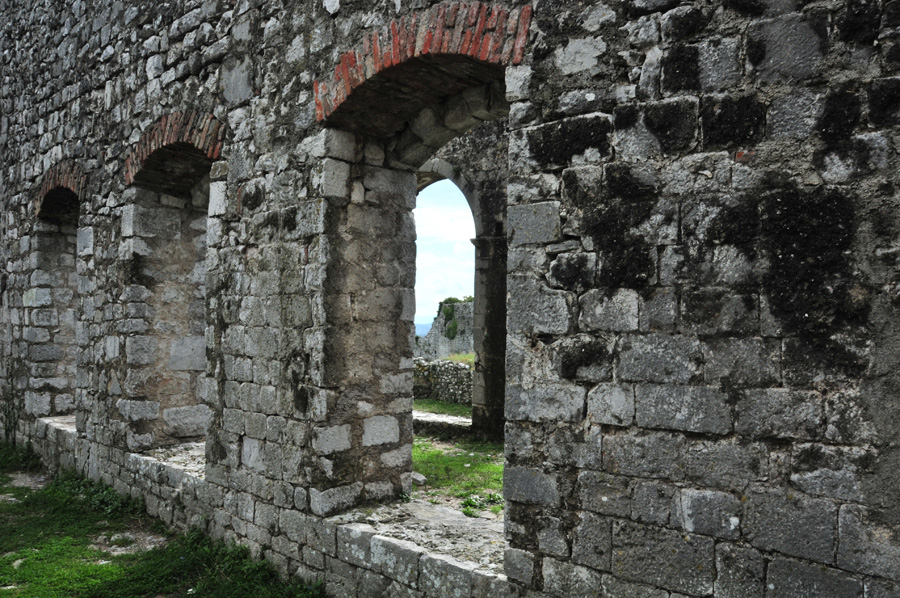 With the exception of the still solid fortified walls dating mainly from the Venetian period, most of the buildings inside Rozafa Castle, including the surrounding church St. Stephan, are destroyed or decayed.