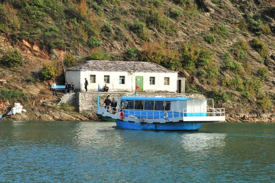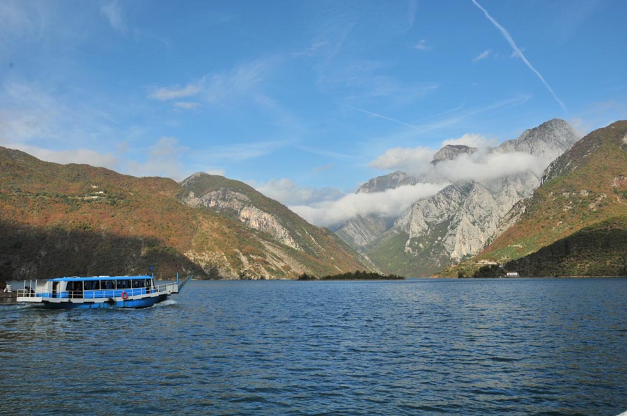 Koman Reservoir - The ferry trip over the Koman Lake (Albanian: Liqeni i Komanit) usually takes about two and a half hours and is increasingly popular among tourists because of the passages between the high rock faces and the narrow gorges of the Albanian Alps.
