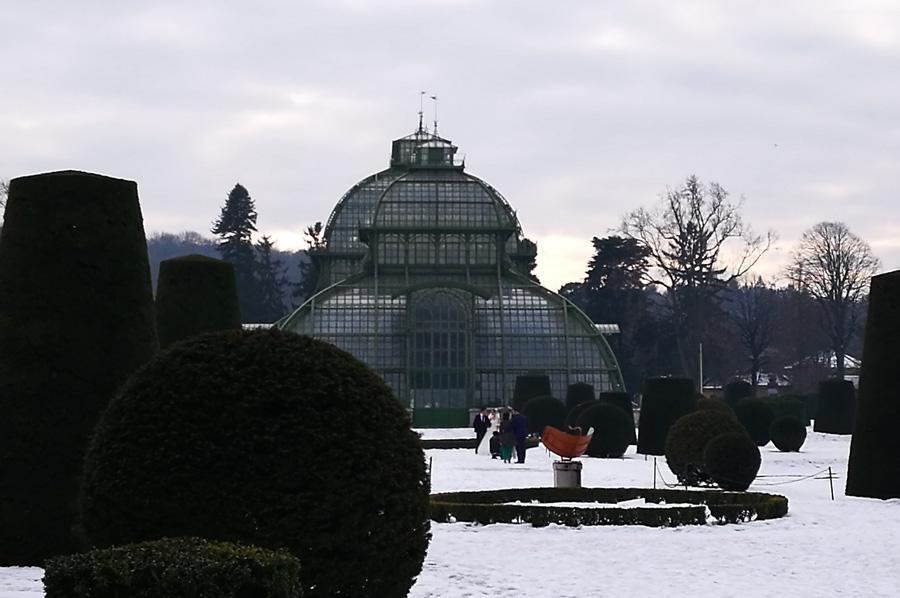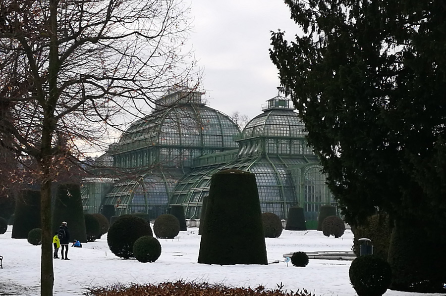 Another main attraction in the castle park is the palm tree house. It was commissioned by Emperor Franz Joseph I in 1880 by his court architect Franz Xaver Segenschmid to present the extensive collection of Hapsburg plants planted in several glasshouses spread around the place. After just two years of construction, the glass house was opened. In 1883 the first planting was completed. With a total length of 111 m, a width of 28 m and a height of 25 m, the Palmenhaus Schönbrunn is the largest glass house of the European continent and one of the three largest in the world. It houses about 4500 plant species, only a part of which is firmly planted, but a larger part is presented as flowering tub plants depending on the season.