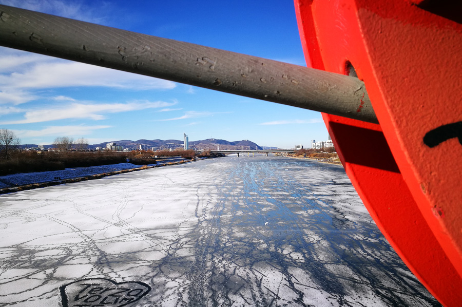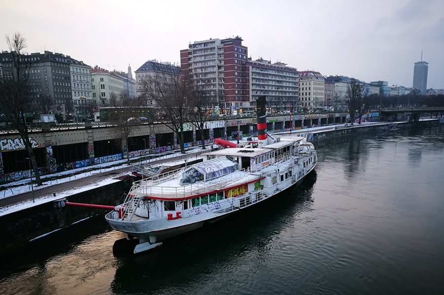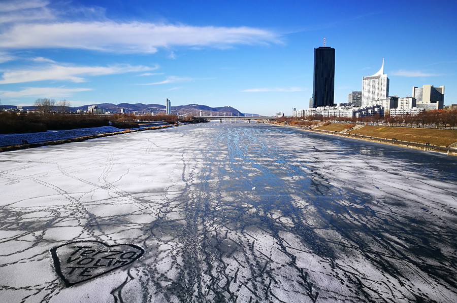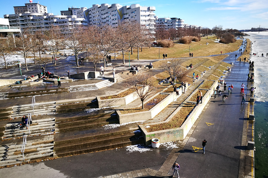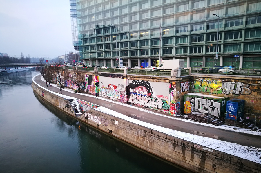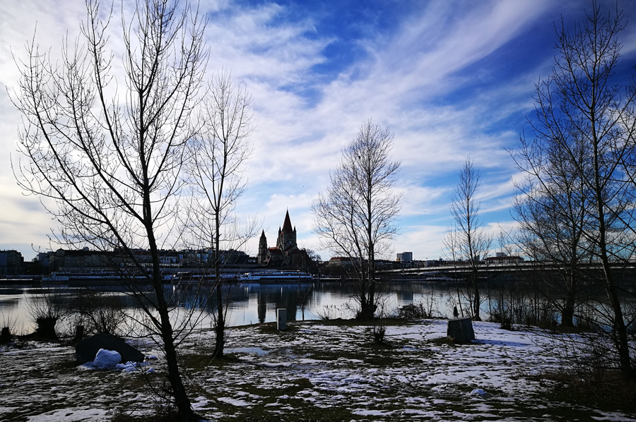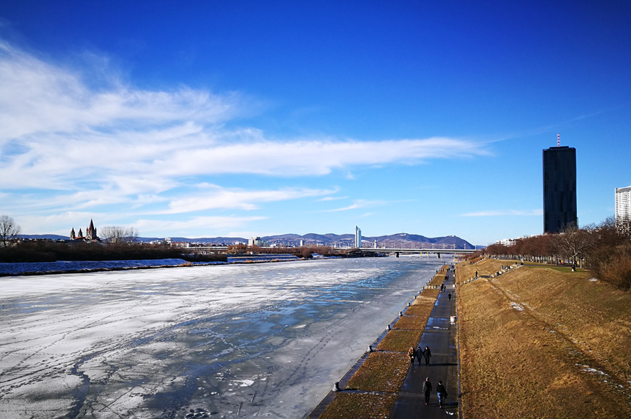 During our tour through Vienna, we have chosen the subway to the station on the Danube Island to take advantage of the rare sunshine of the mostly dull days in February.