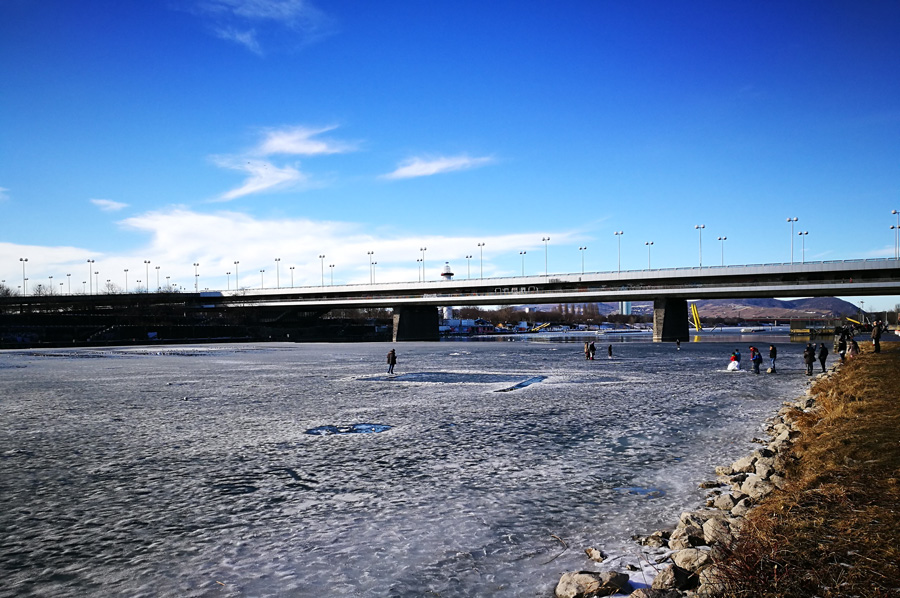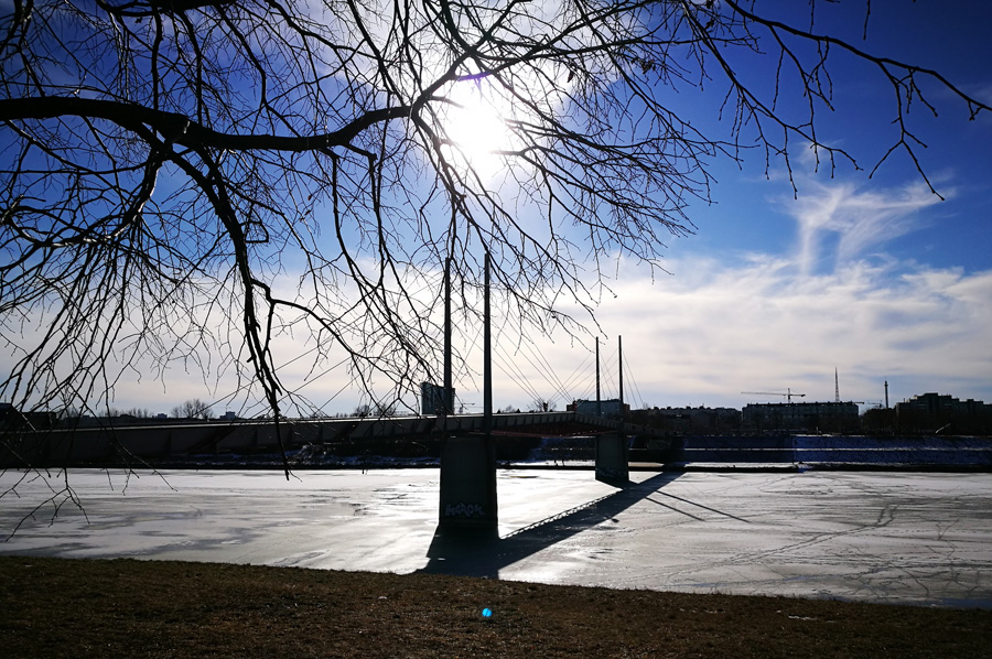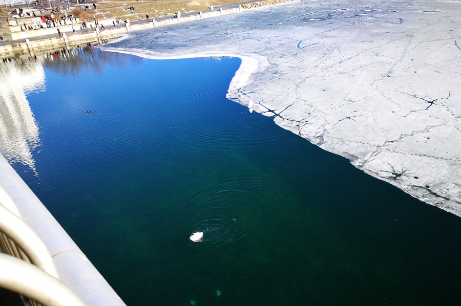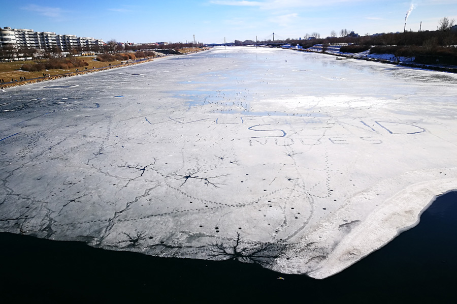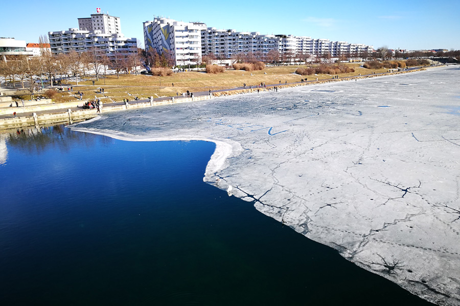 The main arm of today's Danube was completely ice-free, the side arms, despite the now thawing weather, still almost completely frozen, which ice runners and walkers still energetically exploited. We disregarded this possibility, the ice surfaces seemed to us too be too thin and brittle.
