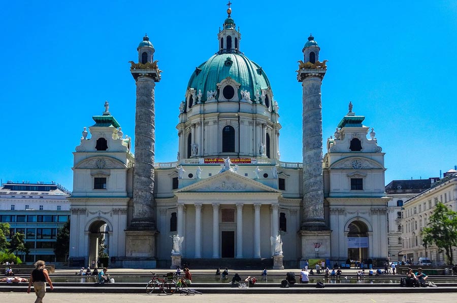 The Viennese Karls Church, a Roman Catholic church in the 4th district of Vienna, was built in the first half of the 18th century. Today, the church is a protected monument.