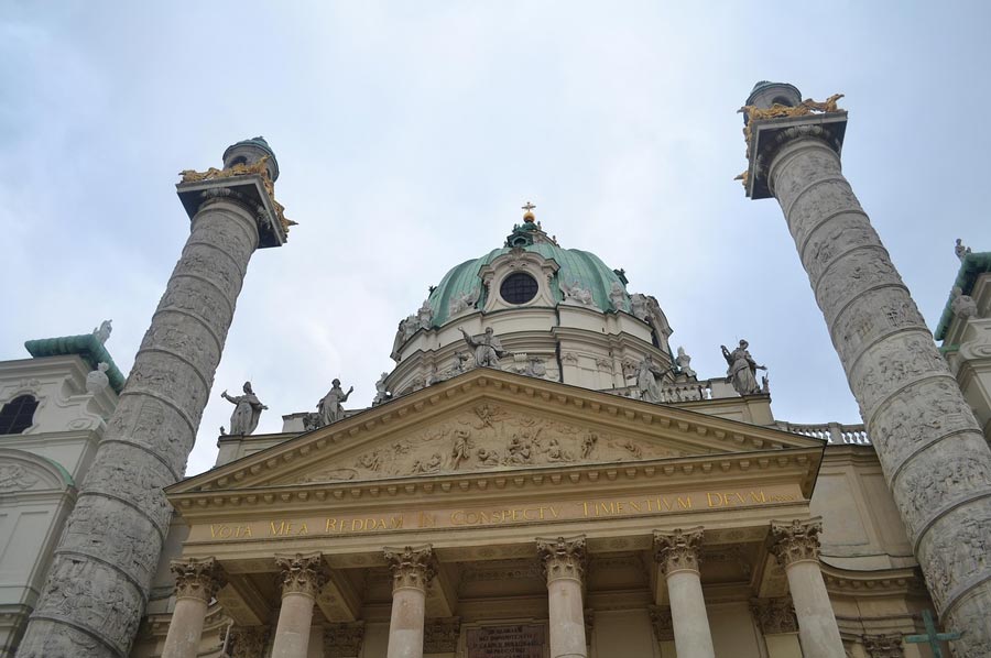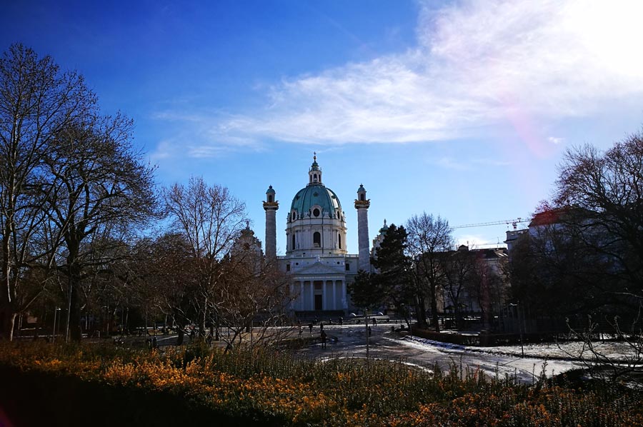 It is located on the south side of the Karlsplatz, close to the center, and is one of the most important baroque church buildings north of the Alps and one of Vienna's landmarks. We reached the church building within the scope of our tour through the inner city of Vienna, whereby again sections were covered by subway.