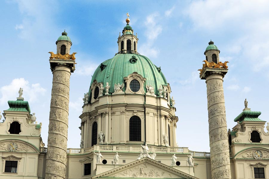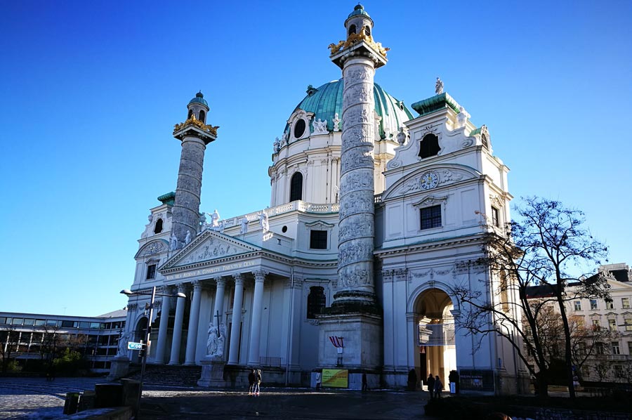 The Karlskirche was built by Emperor Charles VI., commissioned by Johann Bernhard Fischer of Erlach as the central link between Rome and Byzantium.
