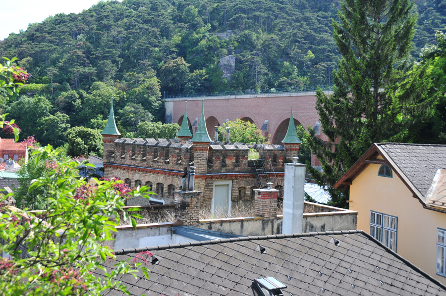 The place name changed in the course of time from medilihha via Medelikch and Medling to Mödling. The roots of the name are probably from the Slavic and are characterized by a slowly flowing body of water, because the Mödlingbach flows through Mödling, which originates in the Vienna forest and flows into the Schwechat at Achau. The Brühler Street leads through a narrow valley, the so-called Klausen, where high above Mödling stands the castle ruins on the one side. The other side of the Klausen is formed by the Kalenderberg, where the Liechtenstein Castle rises on the reverse. At the beginning, the Klausen is crossed by the first Viennese high-water pipeline by a brick aqueduct.