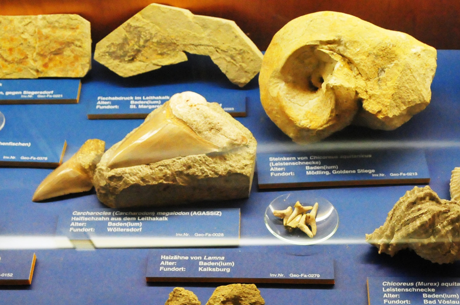 Similar to its time in Turkey, where we were lucky (in the Taurus on the outskirts of Central Anatolia) when we encountered fossil shells in Mut, at least 600 meters above sea level, we were surprised because of some finds in the Museum of Mödling. Who ever is expecting fossilized shark teeth, found in the vicinity of Mödling.