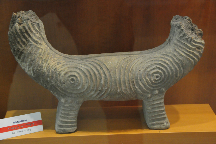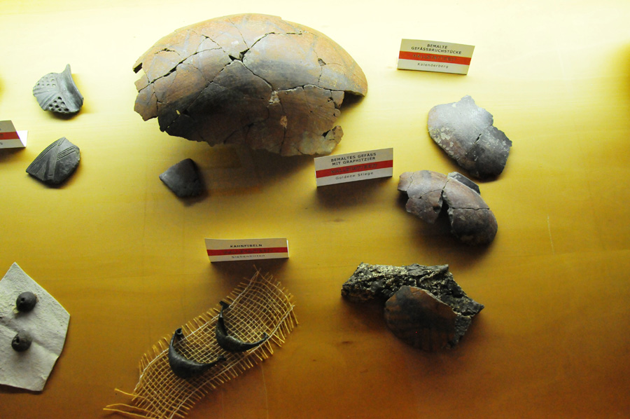 The first settlements of human beings date back to the Neolithic period, as grave finds document in a double burial place. Many finds were also made on the Kalenderberg and the Jennyberg, both from Hallstatt time. Next to the train station Roman coins and a grave were found. Not far away East Germanic graves were found, which refer to the inhabitants of the region after the retreat of Rome. A Langobardian burial ground in the south of Mödling testifies the settlement of the Langobards, which settled here towards the end of the migration period, before the mass of this people moved on to Pannonia and finally Italy, leaving the Avars in the Carpathian Basin. The urban area of Mödling remained populated during this time. This was demonstrated by excavations of a grave field with more then 500 graves at the golden stairs (place next to Mödling). Grave attachments and completely preserved skeletons are exhibited in the museum of the town. After the victory of Charlemagne beating the Avars in 803, the settlement from the Bavarian-Franconian region began.