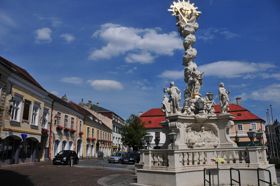 During the first Turkish occupation in 1529, a large part of the city was destroyed for the first time. In 1679 many inhabitants died of the plague. During the second Turkish encampment in 1683, a large part of the inhabitants were killed. However, a revitalization by settlers from Styria, to which the Styrian Panther in the heraldic shield is still reminiscent today, succeeded. As only 22 inhabitants died during the second plague epidemic in 1713, the Trinity Column or Plague Column, as it is called today, was built as a thanks.
