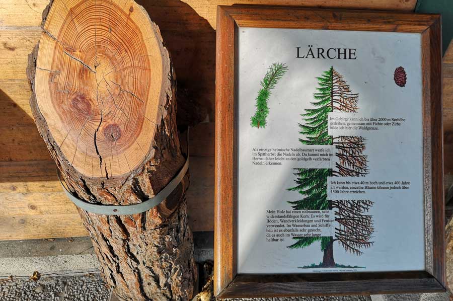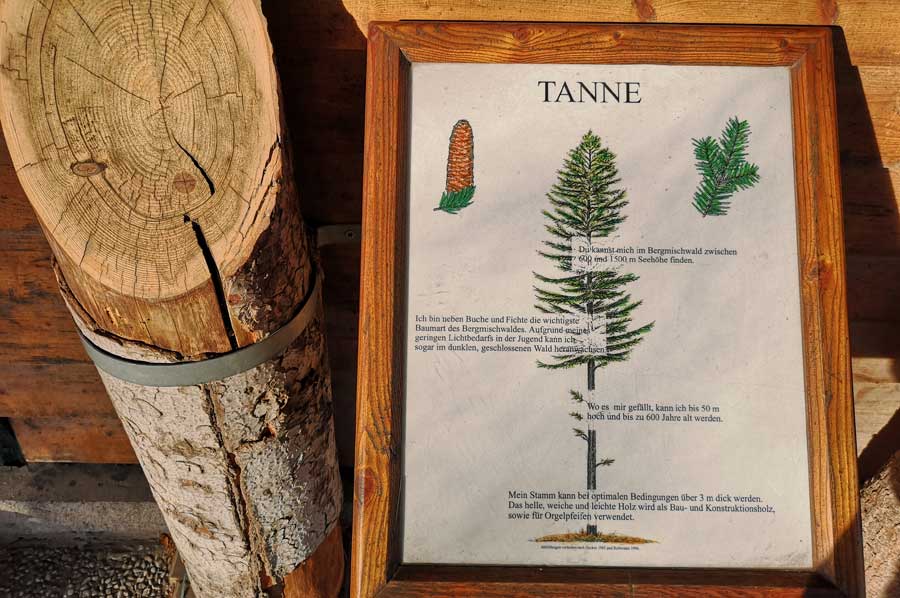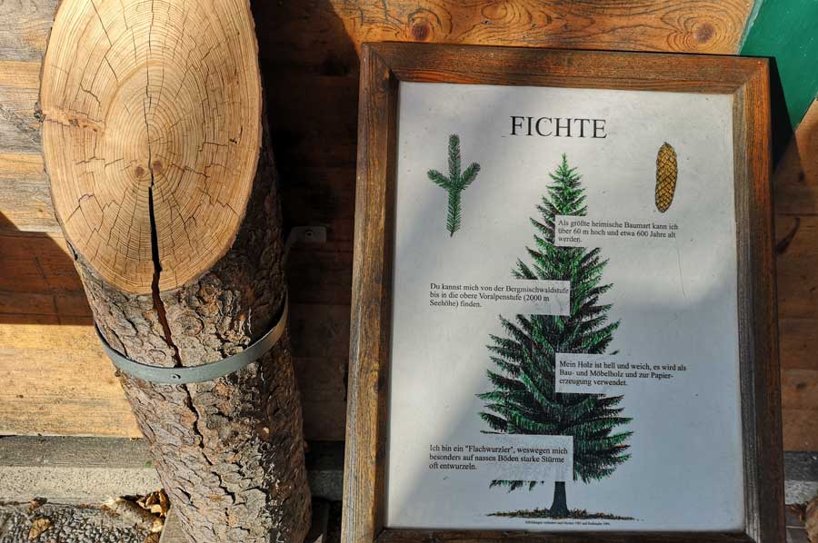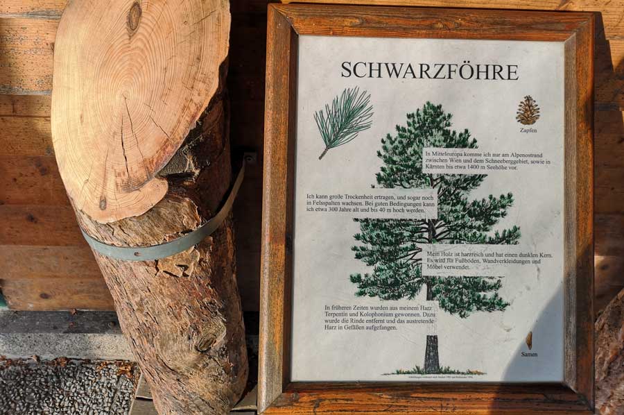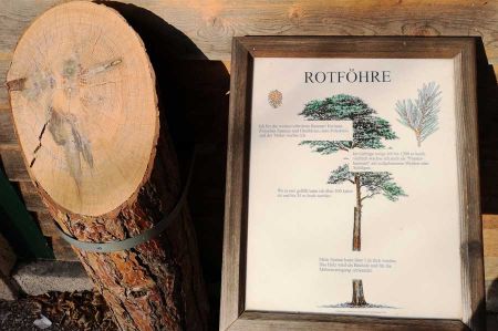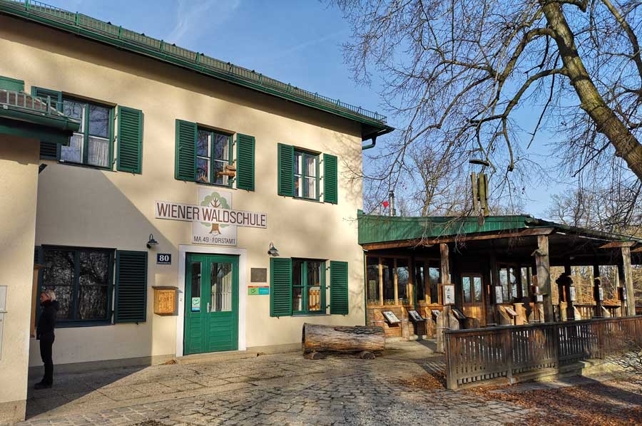 Directly next to the observation tower is the Vienna Forest School, a facility of the local forestry office, in which children and adults, especially of course schoolchildren at so-called "Waldschultage" should be taught more environmental awareness. Before there has been a vacant restaurant, the building was then completely renovated and opened again on May 8, 1998 as "Wiener Waldschule". And even if we could not come this Sunday, the exhibits outdoor area worth seeing. Drawers are used to draw attention to the abundance of livestock and trees in the Vienna Woods, especially the tree sections with a sectioned cross section, which showed a good insight into the biodiversity, the structures and the resulting resistance to decay and insect infestation.