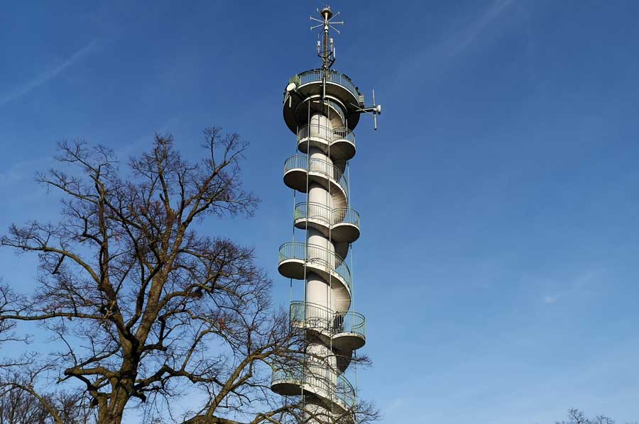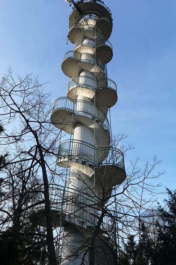 The so-called Jubiläumswarte is located on the Vogeltennwiese at an altitude of 449 meters. The ascent to the observation deck of the Jubiläumswarte is usually open to the public, but in the winter months it is often closed due to possible ice fall.