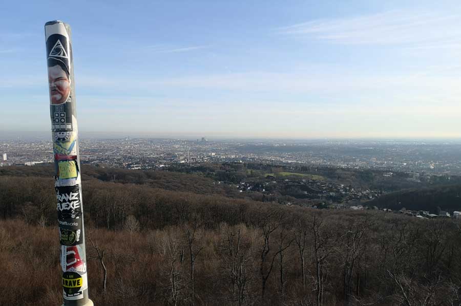 Sunshine and the urge to move had lured us up to the jubilee area into the Vienna Woods, a kind of lookout tower on the Gallitzinberg on the western outskirts of Vienna.