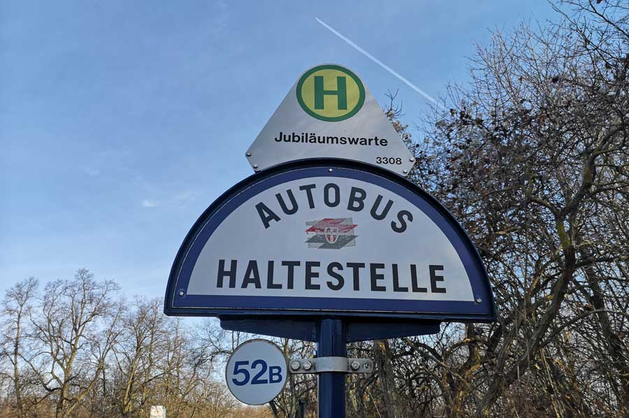 To reach the Vienna Forest School and thus the Jubiläumswarte with the bus line 52B from the stops "Jubiläumswarte" (right in front of the control room, but is approached only three times per day and direction) or "Settlement Kordon" (is further away, but will be served more often), on driving and hiking trails from the Schottenhof and Heuberg; with the lines 46A and 46B, stop "Feuerwache am Steinhof" or "Savoyenstraße" and about twenty minutes walk. By car you can reach the control room via the Johann-Staud-Straße and the Pelzer Rennweg.