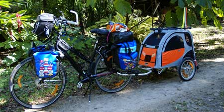 As relative newcomers on a section of the Main Cycle Path, we were quite astonished when we met Rita, who spent her short break this time with bicycle, panniers, tent and .... dog during a short break between Dettelbach and Volkach.