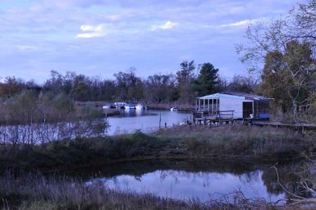 In the meantime we arrived at the Canale Quarantia, which partly runs parallel to the Isonzo. Here the path leads along the protective dike along the watercourse, one encounters fishermen who have dug in almost small harbors the same moorings in front of the fishermen's huts, idyllic fishing huts and sun-drying nets. Time seems to have stopped here. There are small islands in the Canale Quarantia, then alluvial zone, then forest, which seems almost impenetrable. At the many bent trees is clearly visible that it must have just given a flood.