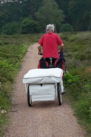 Pulling the trailer went smoothly with both the e-bike and the touring bike without power, both on the usually paved Fietspad and the sometimes unpaved Fietspad in the heath.
