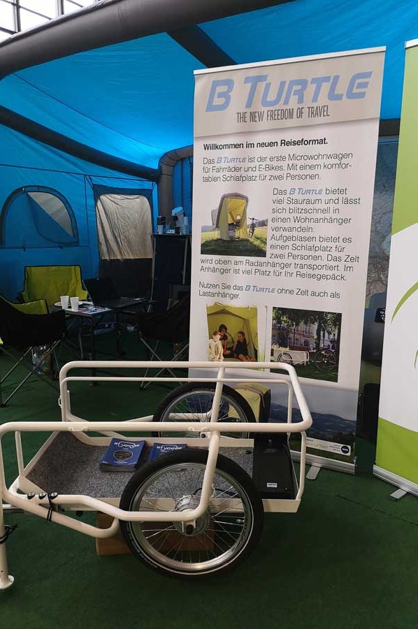 Of course, there was a lot of news on the stands of the wheel manufacturers, conspicuous the immensely strong widening in the variants in the e-bikes, whose market share increases so noticeably. Also in the accessories on the subject of traveling by bike the same picture, where even recently doubts had emerged regarding the all-encompassing applicability, suddenly there are solution offers – as a sample the BTurtle.