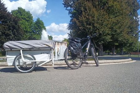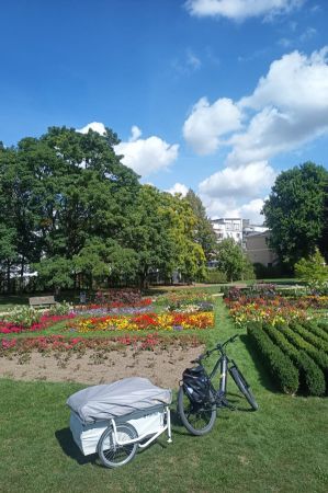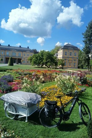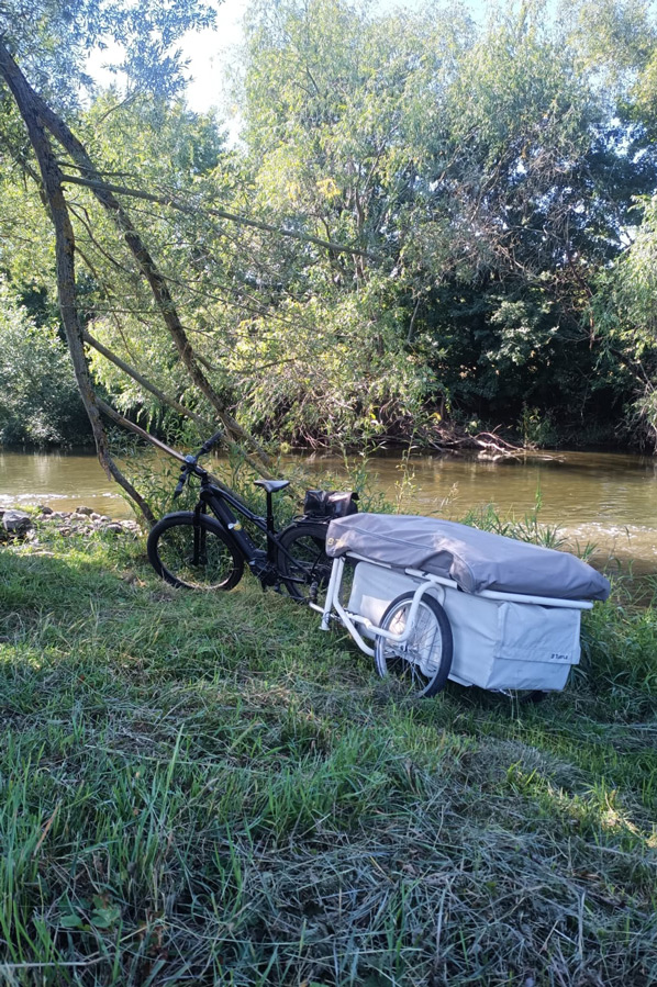 E-bike and caravan trailer were quickly coupled, so that nothing stood in the way of continuing along the Weißen Elster. From the train station to the meeting point there was only about 12 kilometres to go, for which Moritz needed a good three quarters of an hour, as there were still a few foros to be made.